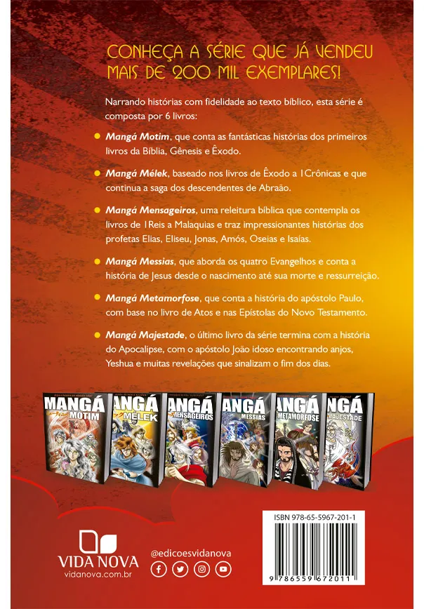 • Mangá Mensageiros, uma releitura bíblica que contempla os livros de 1Reis a Malaquias e traz impressionantes histórias dos profetas Elias, Eliseu, Jonas, Amós, Oseias e Isaías.